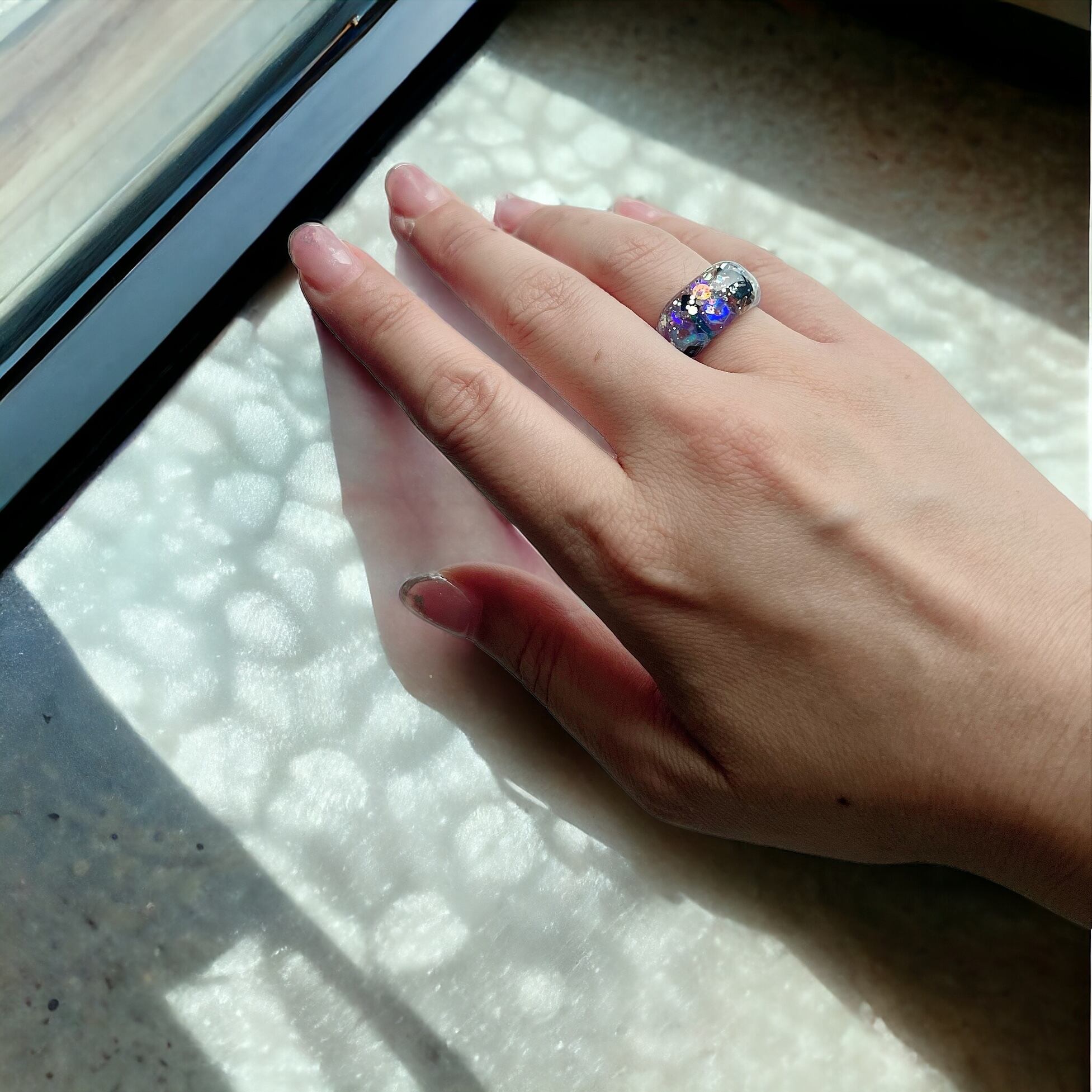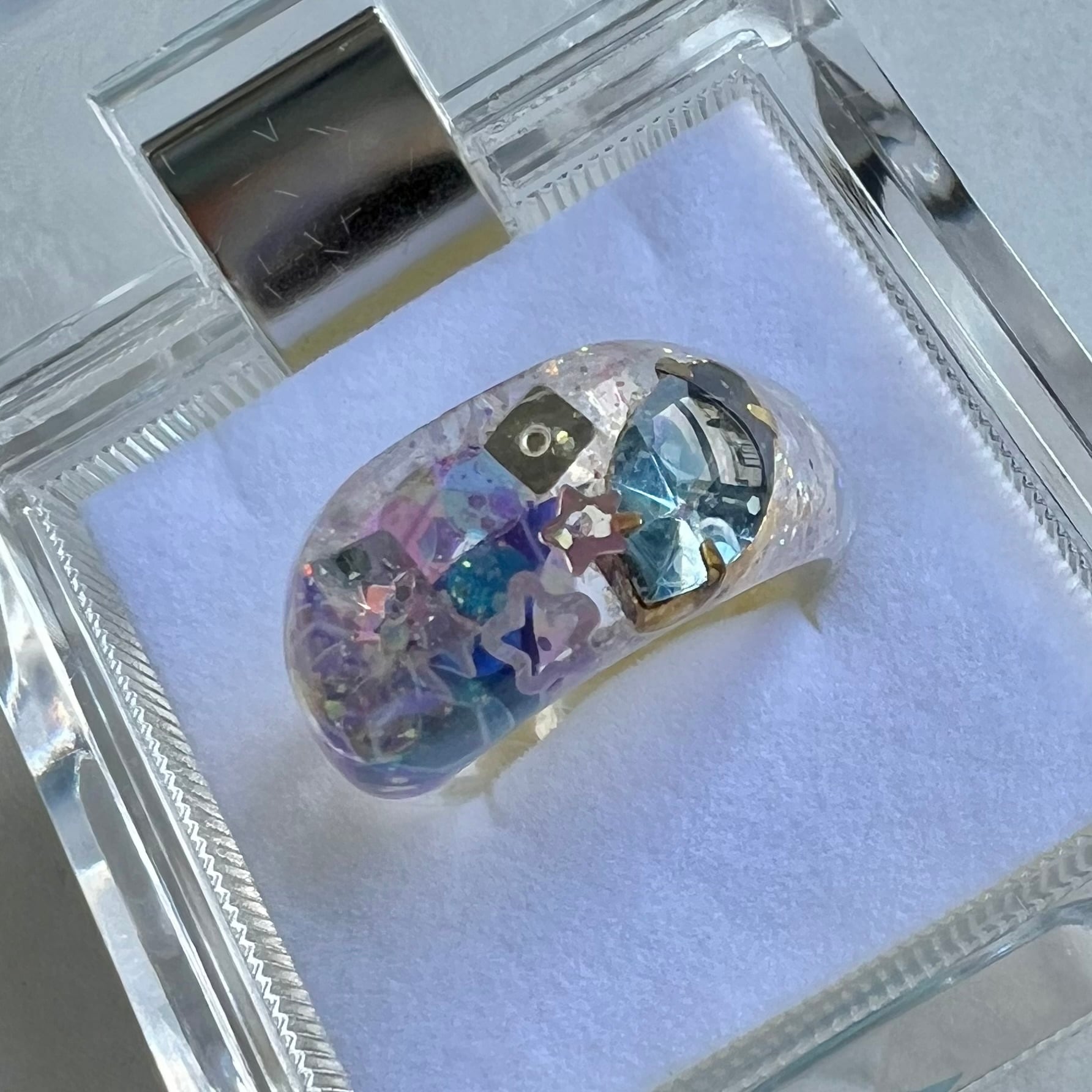 きらきらをぎっしりと封じ込めたゆびわです。